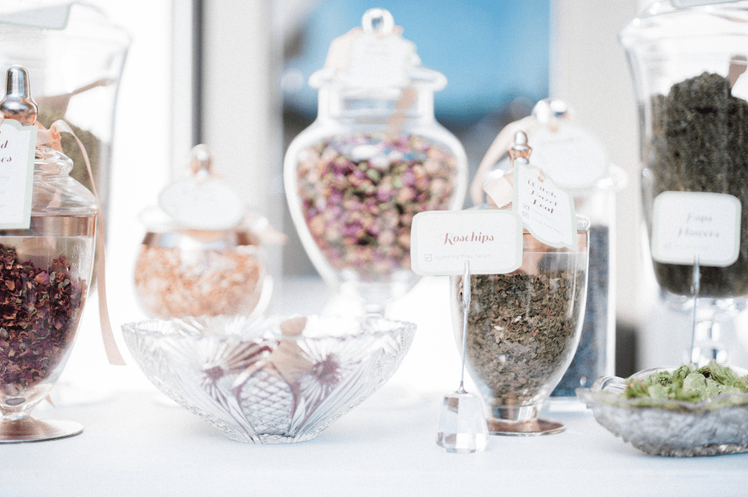 This tea bar by Pixi Beauty reflects the natural ingredients in their cosmetics, and took time to source, plan and execute. Photo by Brandon Aquino Photography.