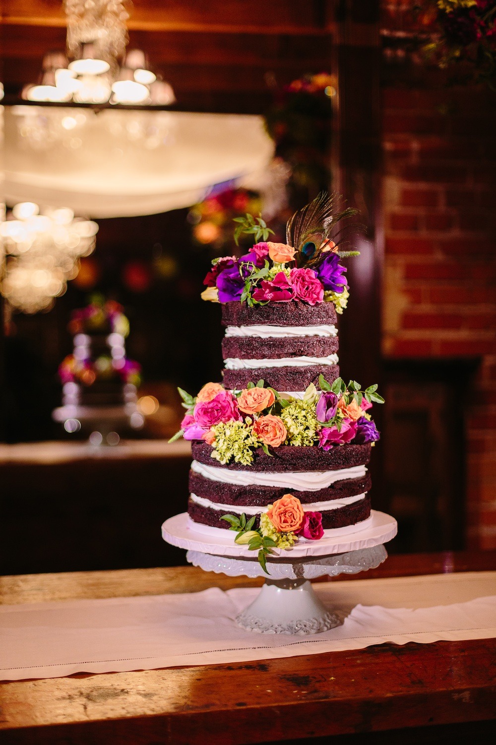 A little chocolate goes a long way! Cake – Fantasy Frostings; Florals – Peony and Plum; and photography by Brian Leahy at Carondelet House.