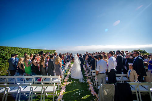 Visualizing an ocean view can also soothe your mind. Photo by Sam Lim Studios, florals by Flower Duet.