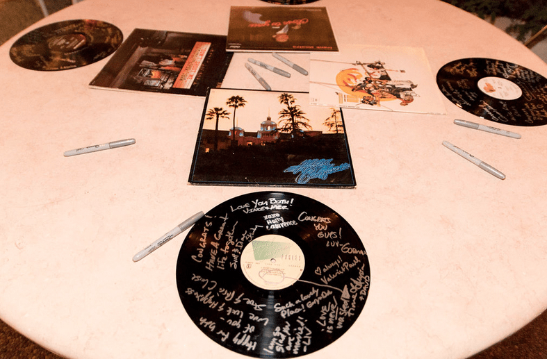 We secured room blocks at hotels nearby and also provided transportation for many guests to ensure they could fully enjoy the evening’s events.  The couple’s passion for music was reflected in a vinyl guest book – guests signed records with silver pens as a momento to keep forever.