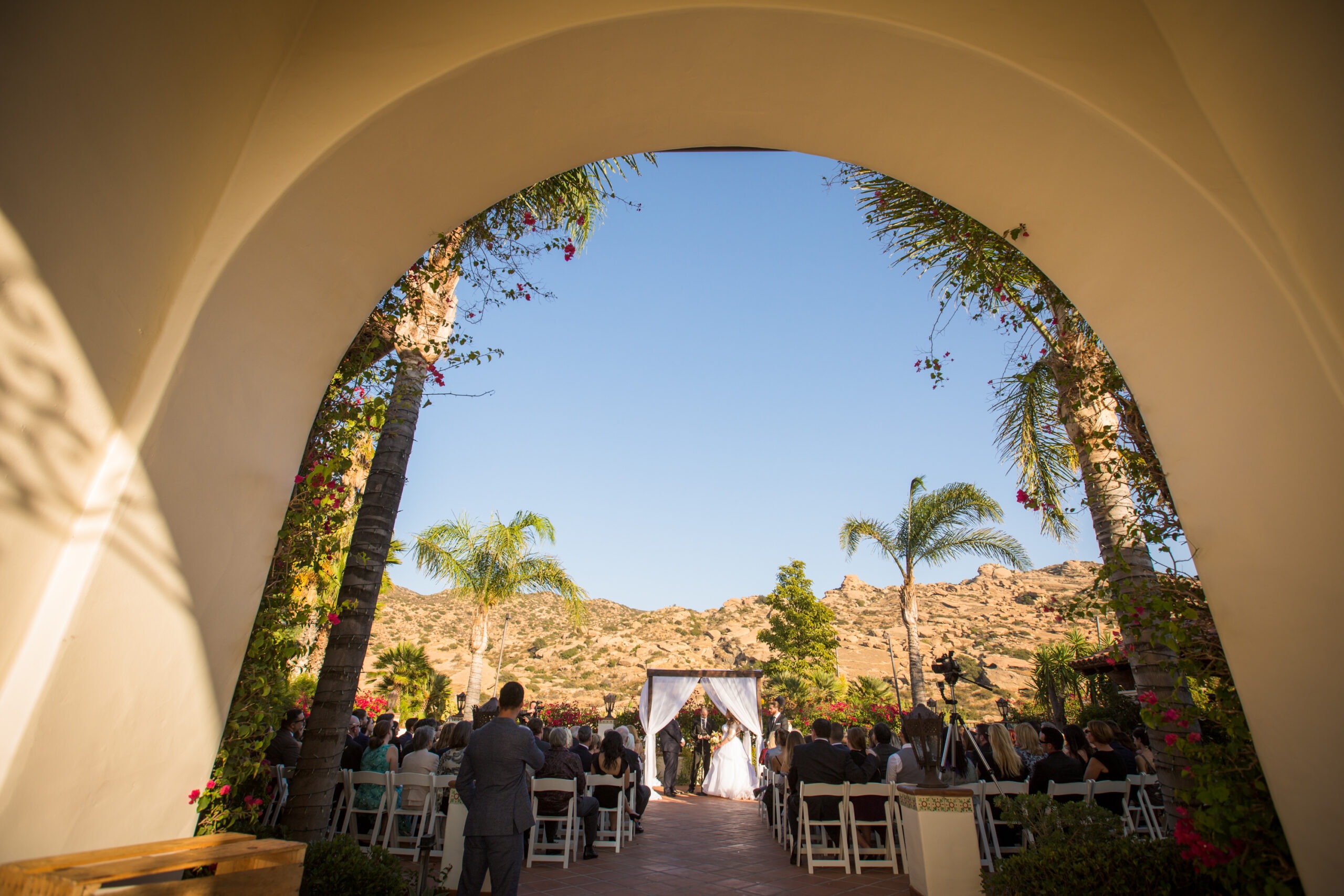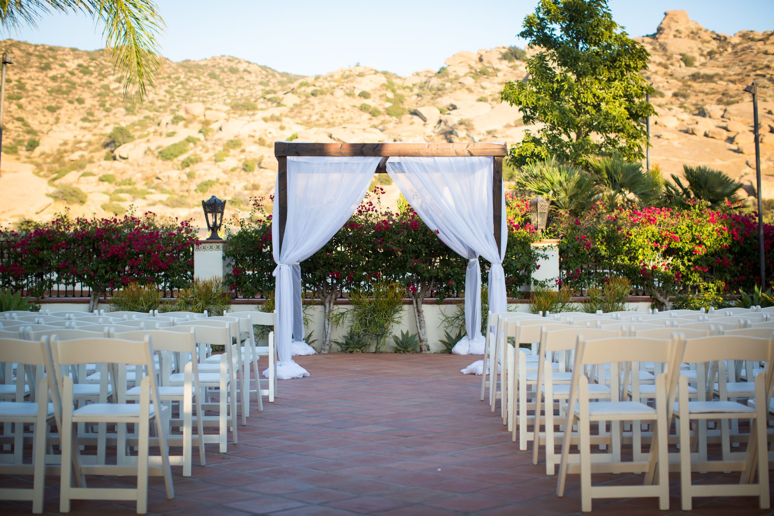 The Santa Ana winds kicked up big time the day of the wedding, and rentals vendor A Rental Connection made sure the arbor they provided for the chuppah was well-anchored and stabilized. The wedding ceremony went without a hitch, with the stunning Santa Susana mountains in the distance.